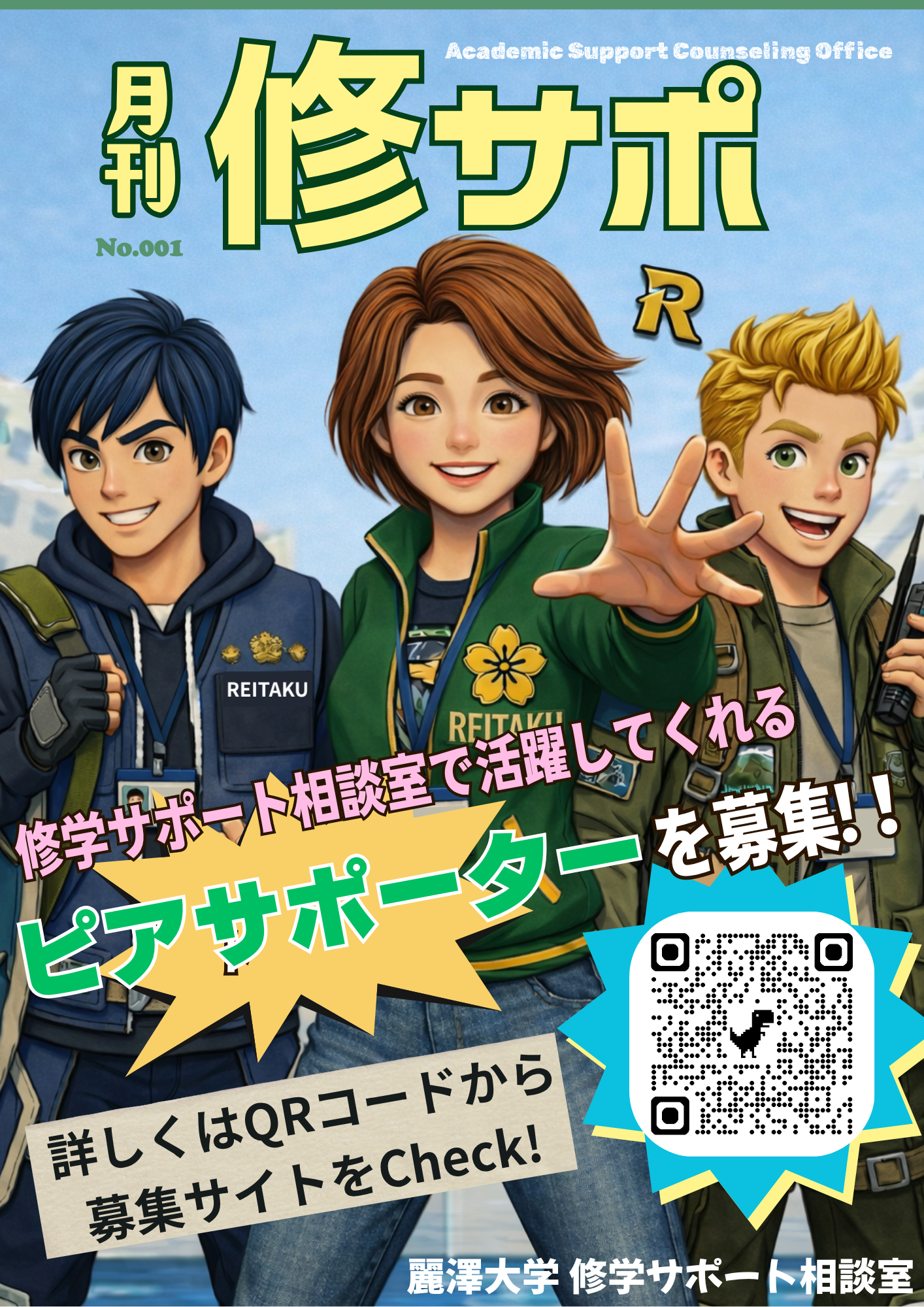 「身体的、精神的、社会的に満たされた良好な状態」をウェルビーイング(well-being)といいますが、学生へのサポートを中心に、様々な企画イベントやPR活動を通じて、誰もが安心して過ごせる環境づくりに取り組み、"支える・つながる・楽しむ" をテーマに、学生同士だからこそできるサポートや企画をチームで行っていく。そんな活動をするボランティアのみなさんを「ピアサポーター」といい、5月21日まで、修学サポート相談室で、このピアサポーターを募集しています。登録は、担当者の話を聞いてからでも大丈夫!ご興味のある方は、ぜひご検討ください。