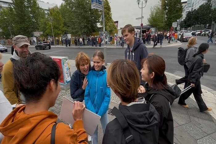 矢野さん:私のグループは、翻訳機をあまり使わず、簡単な単語やジェスチャー、写真を組み合わせて伝えることを意識しました。ドイツ語の授業では、英語や日本語を使わず、知っているドイツ語の単語やフレーズだけで会話を成り立たせる訓練をしています。その学びを活かして実践してみると、意外と通じて驚きました。また、「ありがとう」「こんにちは」だけでも現地の言葉で挨拶すると、皆さん嬉しそうに対応してくれたのが印象的でした。