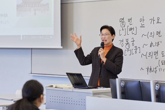 K-POPや韓国ドラマの世界的なヒットを背景に、今、韓国語を学びたいという熱意が学生の間で高まっています。その「好き」という純粋な思いを、確かな語学力と文化理解へと昇華させる場所――それが、今年度※から新設された麗澤大学の「韓国語・韓国文化プログラム」です。語学の習得にとどまらず、歴史や文化、社会背景までを深く掘り下げることで、隣国・韓国と真に心を通わせるための「生きた教養」を育みます。後編では、学生たちの学ぶ意欲と、それに応える李先生・森先生の熱のこもった授業現場をレポートします。