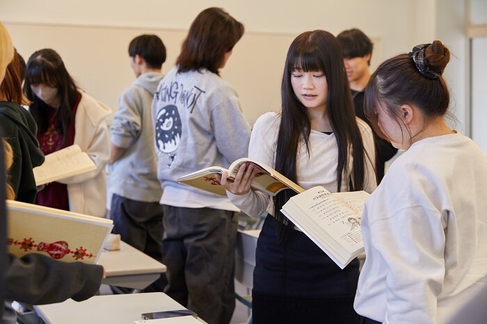 印象的だったのは、テキストの音読練習の場面でした。「『ポ』の発音は、もっと強く。少し大袈裟なくらいがカッコいいですよ」というアドバイスに、学生たちは照れながらも大きな声でトライします。