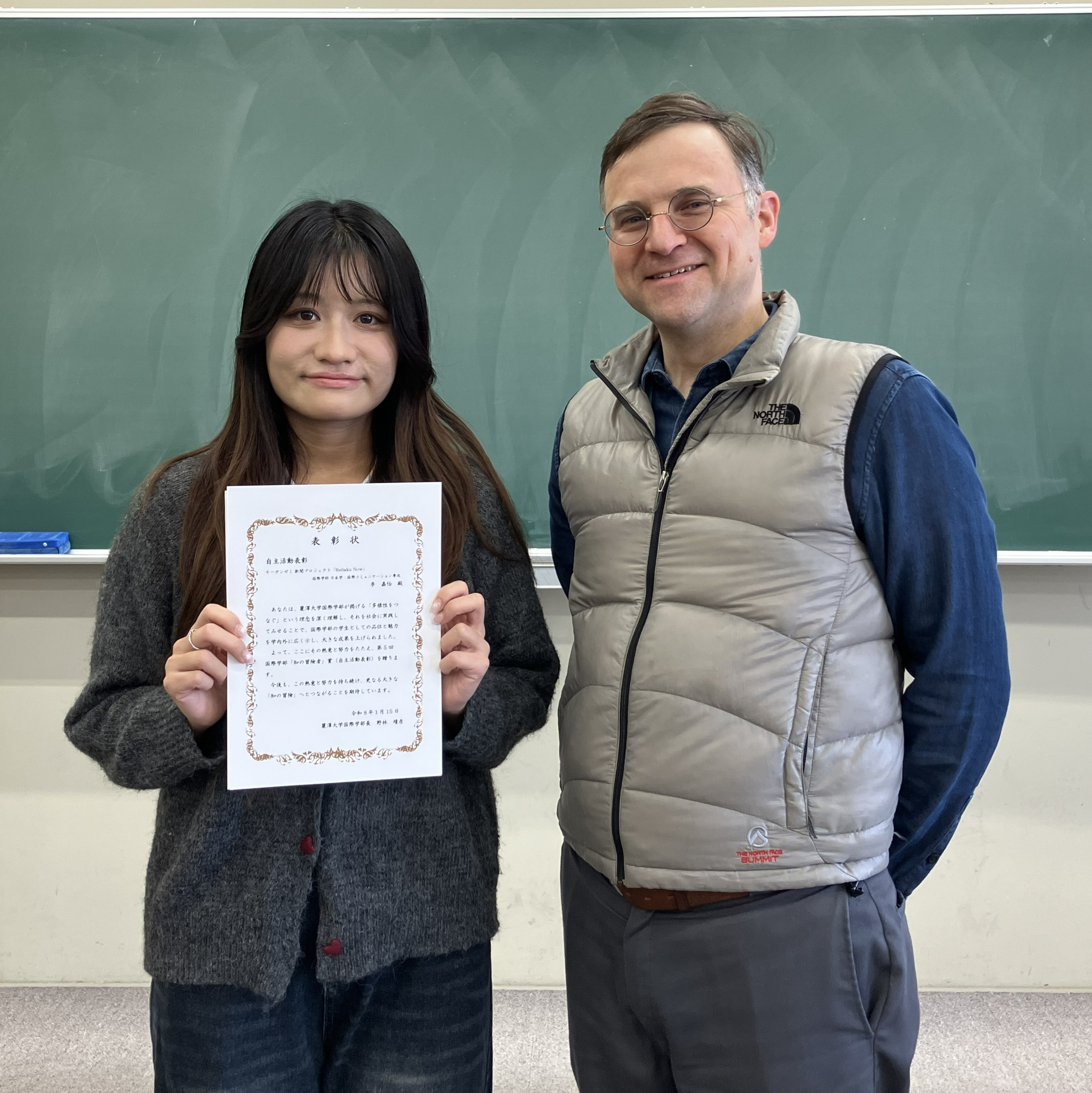 国際学部では今後も、学生一人ひとりの挑戦と成果を称える表彰を続けてまいります。引き続き、国際学部学生の活躍にご期待ください。
