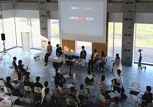 さらに、先輩による「ぶっちゃけトーク」では、1年次の失敗談や授業の感想、大学生活での喜劇・悲劇エピソードなどが語られました。「英語の授業の単位を落としたことがある」といった率直な話も飛び出し、新入生にとってはリアルな大学生活を知る貴重な機会となりました。