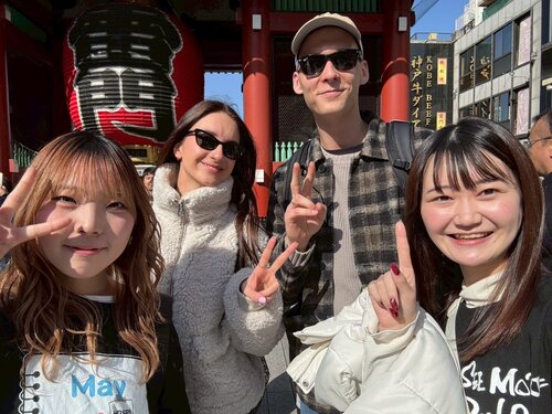 天候に恵まれた暖かな快晴の浅草で、2026年3月1日に外国語学部主催行事ホスピタリTee活動を実施しました。お揃いの「ホスピタリTeeシャツ」に身を包み、困っている外国人観光客に声をかけてお手伝いしようというコンセプトで2014年8月に開始した活動です。コロナ禍での休止を経て復活し、公式活動だけでも今回で27回を数える長寿イベントになっています。その内容は、これまでも大学のホームページ(麗澤ジャーナルやイベントページ)などで紹介してきましたし、新年度の『大学案内』や広報パンフレット「2027年度スタートアップガイド」でも特集されています。