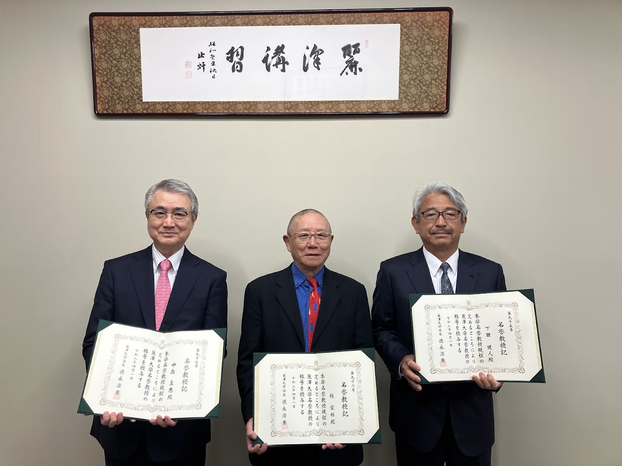 今年度、名誉教授となられた先生は、下田 健人先生、趙 家林先生、中島 真志先生の3名です。