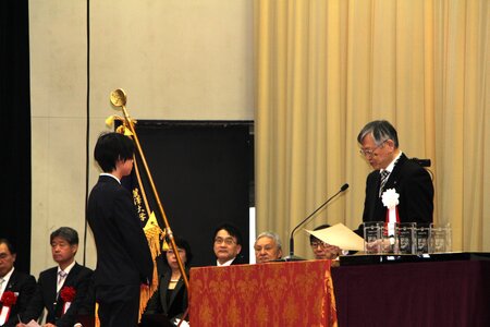 はじめに、徳永学長より修士の学位取得者9名、学士479名、計488名に学位記が授与されました。