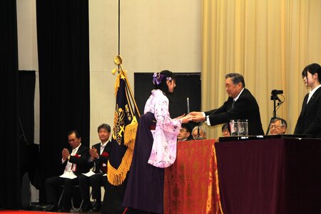 続いて各賞の発表が行われ、「成績優秀賞」3名、「千葉県知事賞」1名、「私立大学短期大学協会会長賞」1名、「学長賞」2名が表彰されました。受賞者には徳永学長より表彰状が授与されました。