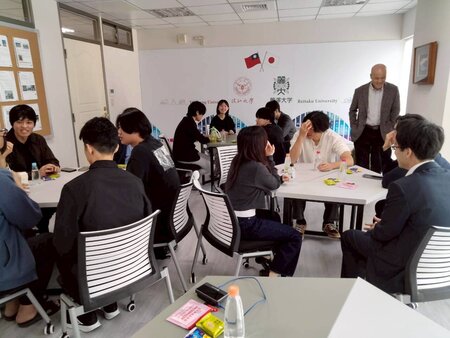さて研修は、3月16日(月)、長年に亘り本学と提携関係にある淡江大学訪問で始まりました。同学・葉剣木国際長の経営学に関する英語講義を受けた後、「淡麗中心」で学生と交流しました。