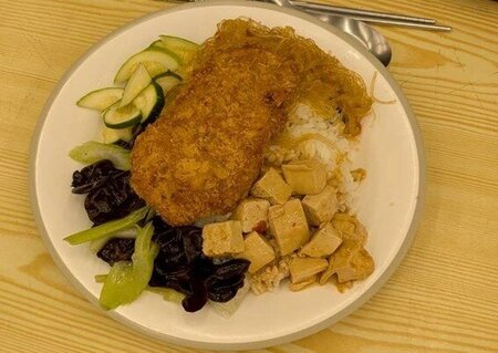 淡江大学学食の定食です。80台湾ドル=400円くらい。麗澤大学の学食と同じくらい安くて美味しいです。